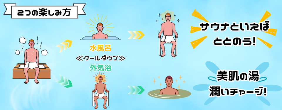 🔹 サウナ → 外気浴 → 美肌の湯 = 相乗効果!